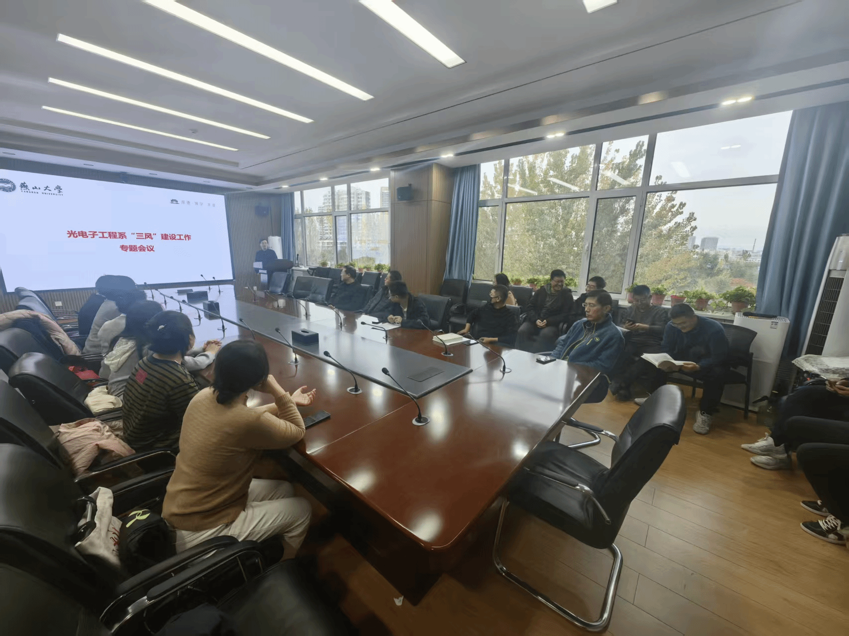 为深入推进“三风”建设,切实提升教学工作水平,10月30日下午,信息科学与工程学院光电子工程系在1号楼336会议室组织召开“三风”建设专题工作会议。会议由系主任付兴虎主持,全系教师参会。