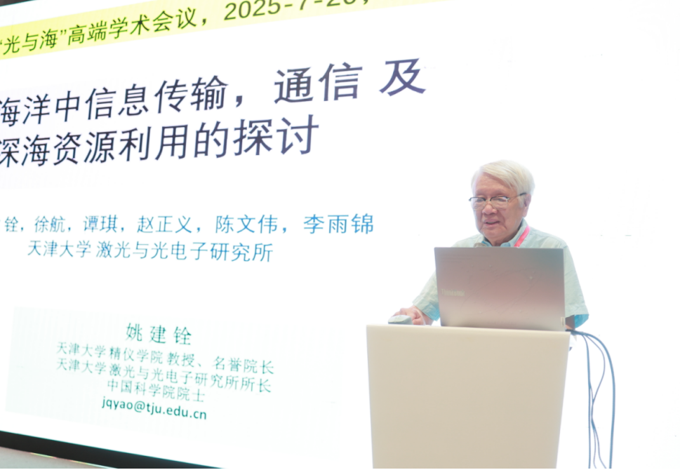 来自中国科学院、清华大学、天津大学、北京理工大学、长春理工大学等科研院校及机构的100余位专家学者齐聚一堂,围绕四大核心主题展开深入研讨:物理海洋原位监测技术与仪器的需求与挑战、海洋生物识别/监测/预警与防控技术及装备、低空遥感及深远海探测与监测技术/仪器及装备,以及AI赋能海洋监测与预警技术与装备,全面覆盖海洋光学领域的前沿方向与实践需求。姚建铨院士、范滇元院士、孙松研究员、邵理阳教授、郝群教授、孔令杰教授作大会报告。大会报告内容全面、突出工程应用,既有光学技术在海洋学科领域的应用,也有针对现有海洋光学的前沿探索思考。