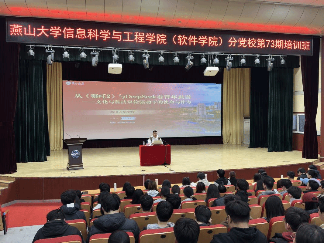 孟宪源以《从〈哪吒2〉与DeepSeek看青年担当—文化与科技双轮驱动下的使命与作为》为题,为学员带来首堂专题党课。孟老师以国产动画电影《哪吒2》与前沿的人工智能成果DeepSeek为切入点,阐释了新时代青年在文化传承与科技创新中的双重担当。孟老师深入剖析《哪吒2》如何以年轻视角重述传统文化,通过打破传统叙事框架,赋予角色鲜明个性与复杂情感;影片通过现代化制作技术使古老神话焕发生机,展现年轻电影人的创新与拼搏,提升了中国文化在国际影响力。在科技创新方面,孟老师介绍了DeepSeek这一人工智能成果背后年轻科研团队的突破,其在多领域展现卓越性能,推动产业升级,突破关键技术壁垒。孟老师强调文化与科技协同发展构建中国力量,以文化自信抵御文化霸权,以科技创新打破围堵,实现双重突破。