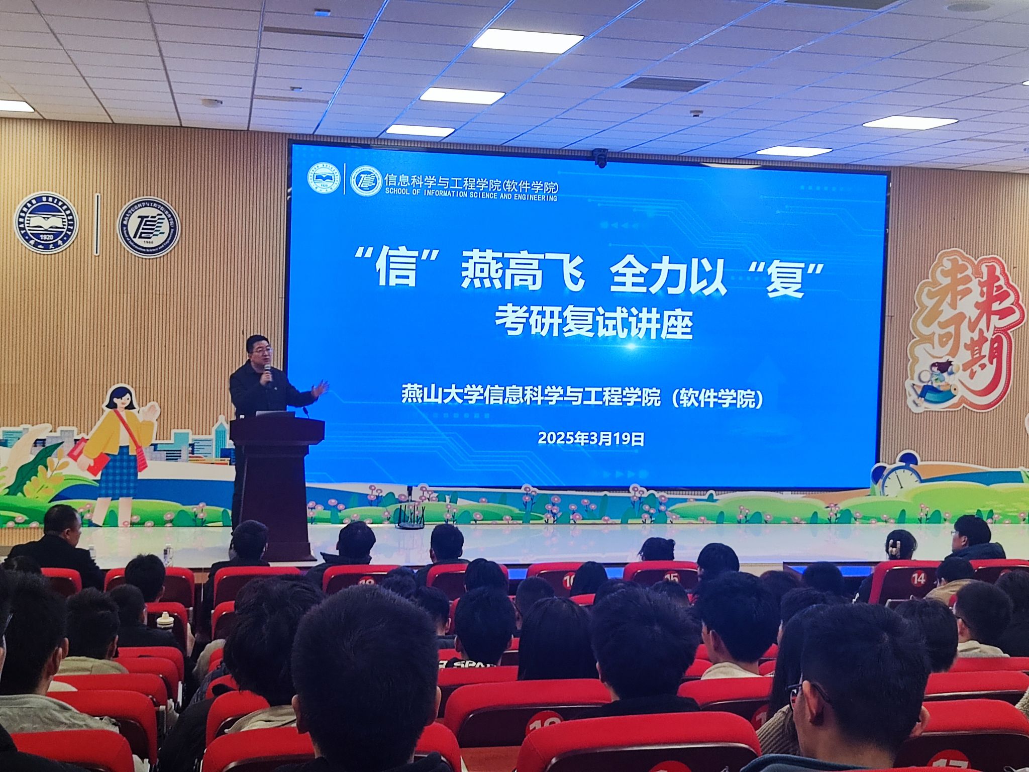 为助力2025届考研学子提升复试应试能力、掌握复试技巧,在考研复试及调剂环节中取得理想成绩,顺利跨越考研征途的最后一公里。信息科学与工程学院于3月19日晚19:00—20:30在行知厅举办了“‘信’燕高飞,全力以‘复’”考研复试指导专题讲座。讲座由学院党委副书记李浩然主持,特邀燕山大学招生就业处副处长朱文华担任主讲,吸引了学院240余名学生积极参加。