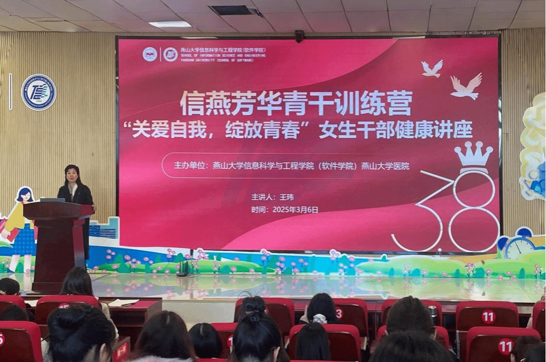 在“三八节”即将来临之际,为帮助同学们增强卫生健康意识,提高自我保健能力,培养良好生活习惯,深入了解女性生理与心理健康专业知识,3月6日下午15:30,信息科学与工程学院特邀校医院王玮副院长在信息馆2号楼行知报告厅为学院全体女学生干部作了信燕芳华青干培训营之“关爱自我,绽放青春”健康讲座,专业科普女性健康知识,讲座由辅导员李萌主持。