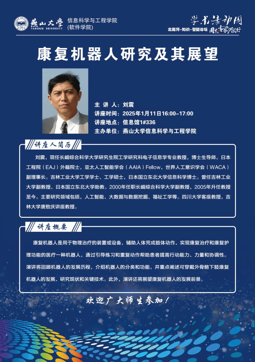 1月11日,信息科学与工程学院(软件学院)“学术活动周”第十六期在信息馆1号楼336举行。活动邀请日本工程院刘震院士作学术报告,本次活动由信息科学与工程学院主办,计算机科学与工程系承办。信息科学与工程学院齐跃峰院长、研究生院赵延治副院长出席活动,此外信息学院和机械学院的部分师生参加了报告会。本次活动由副院长王林主持。