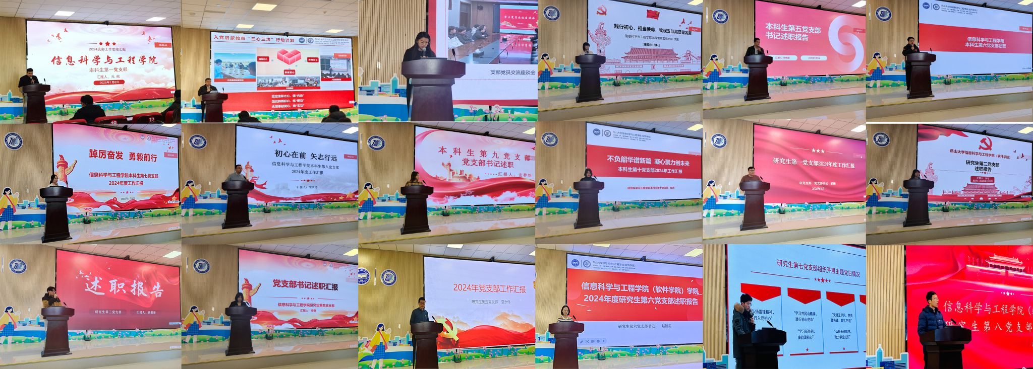 会上,各党支部书记结合自身支部特点,重点围绕“党员教育与管理、党建工作开展情况及成效、党支部特色活动与创新、服务师生与社会责任”等方面,通过生动的案例、详实的数据,图文并茂地展示了过去一年来党支部建设取得的丰硕成果和经验启示。