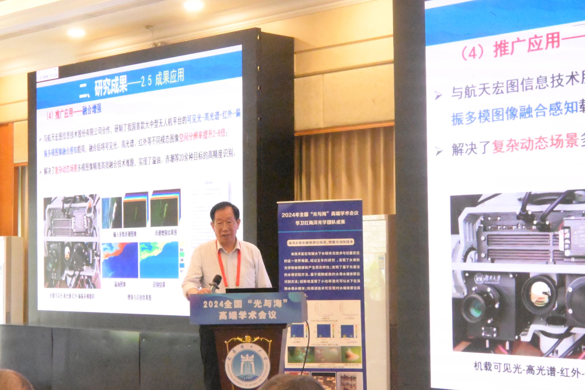 山东省科学院海洋仪器仪表研究所刘岩教授、中山大学殷克东教授、国防科技大学孟洲教授、中国海洋大学薛庆生教授、深圳大学王义平教授、清华大学曹良才教授、澳门科技大学李建庆教授、天津大学张红霞教授、华中科技大学鲁平教授等22位知名专家告和4名青年学者在大会上做了精彩报告。在闭幕式上,刘铁根教授致闭幕总结,毕卫红教授宣布2025年全国“光与海”会议将在秦皇岛召开。