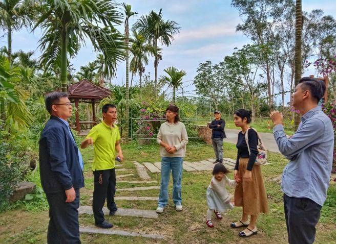 随后,胡诗泽带领校友们穿过次滩状元桥,参观了次滩橘红咖啡馆、次滩萤火虫营地、林下经济体验中心、次滩橘红咖啡庄园等地方,向校友们介绍了他和创业团队小伙伴取得的成绩以及今后的发展规划。