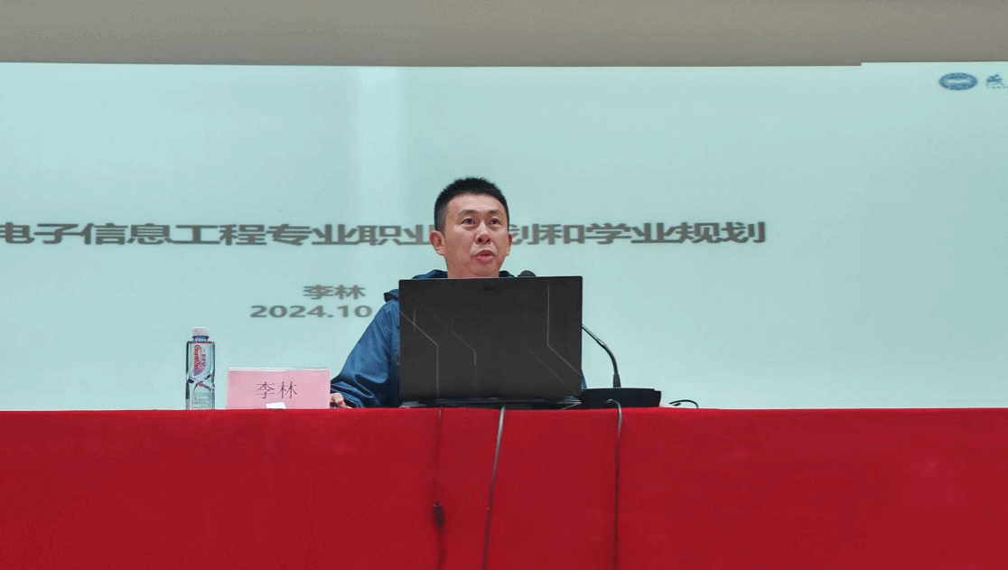 李林老师主要对于电子信息工程专业的职业规划和学业规划进行讲解,讲解了电子、通信专业动手能力的基础和培养、如何正确对待本专业学科竞赛、创新创业能力及热门就业方向等方面的知识,提升了同学们专业方向创新创业及学科竞赛的能力。