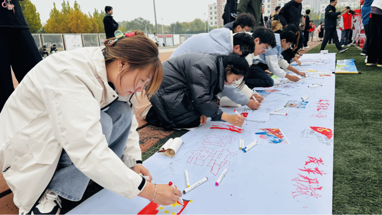“1978年,改革开放,决定当代中国前途命运的关键一招”,在第四枚印章“改革开放”的主题点位中,铺设10米长画幅,学子们以改革开放以来历史成就为主题进行绘画,以视觉形象生动展现祖国经济腾飞的城市景象、科技进步的创新成果,学子们纷纷表示:“我们将继续努力学习,积极投身国家建设,为实现中华民族伟大复兴的中国梦贡献自己的力量!”