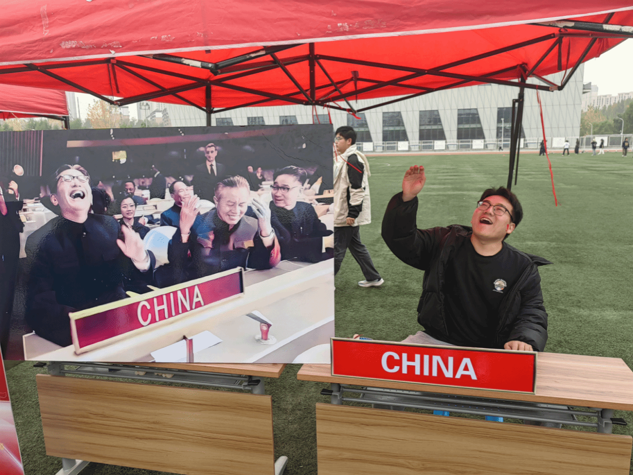 “重返联合国,中国外交的重大胜利”,第三枚印章“重返联合国”,重现经典一幕“乔的笑”,以时任外交部副部长乔冠华畅快、豪放的大笑瞬间,直观展现中国在外交舞台上的重大胜利。现场场景重现,全体参与者身临其境模仿“乔的笑”经典一瞬,深深激发学子的民族自豪感,凝聚强大的民族向心力。
