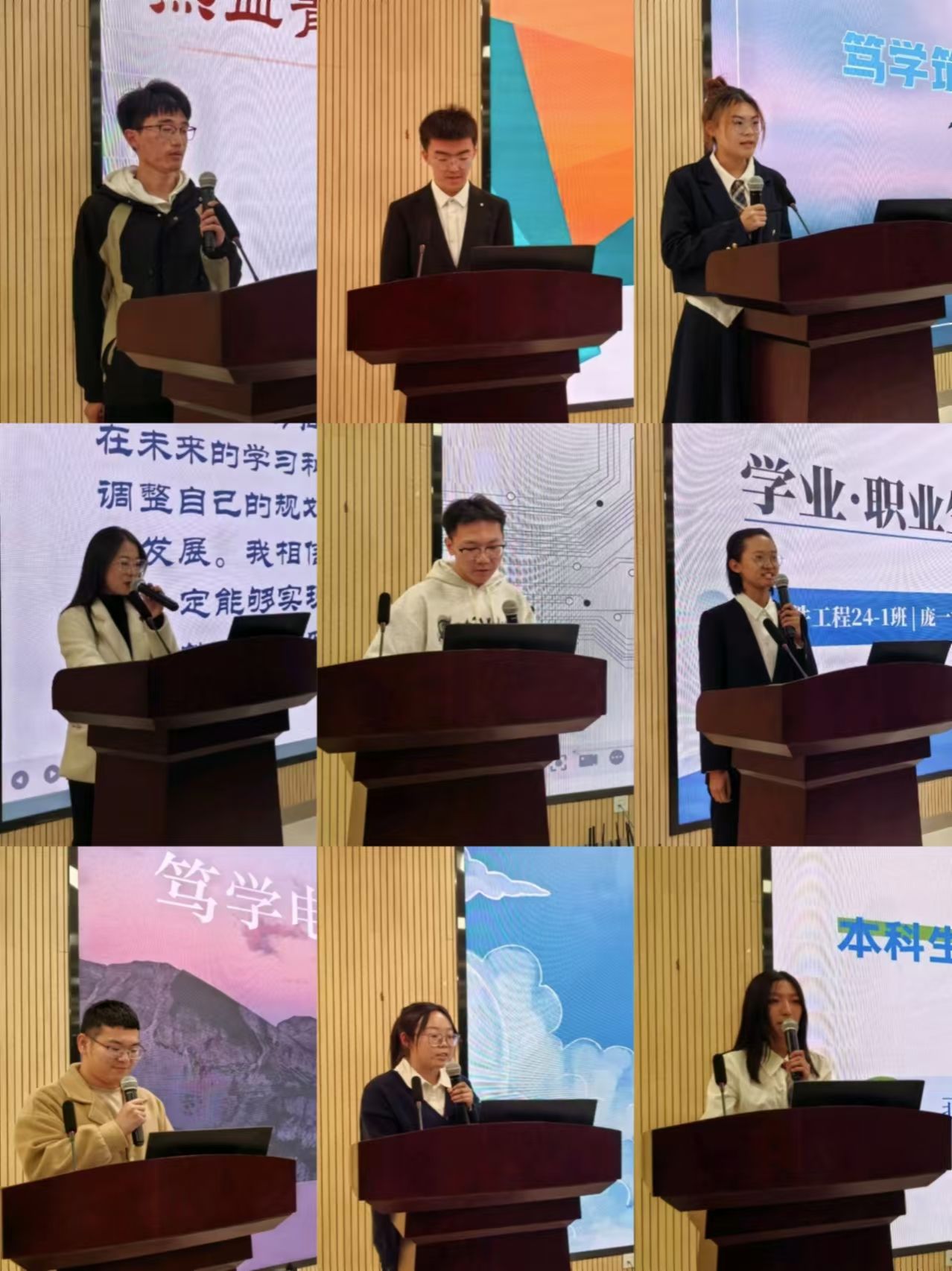 经过前期各班级的初选推荐,共有10位选手进入现场答辩环节,参赛选手依次进行了学业职业生涯规划的展示,分别从自我认知、专业认知、环境分析、学业规划以及实施方法等方面进行阐述,呈现出条理清晰的学业规划和拼搏向上的青春风貌,不仅带来了对学业规划独特的见解和思考,也为在场的同学们提供了值得借鉴的学习经验。比赛现场气氛热烈,高潮迭起。