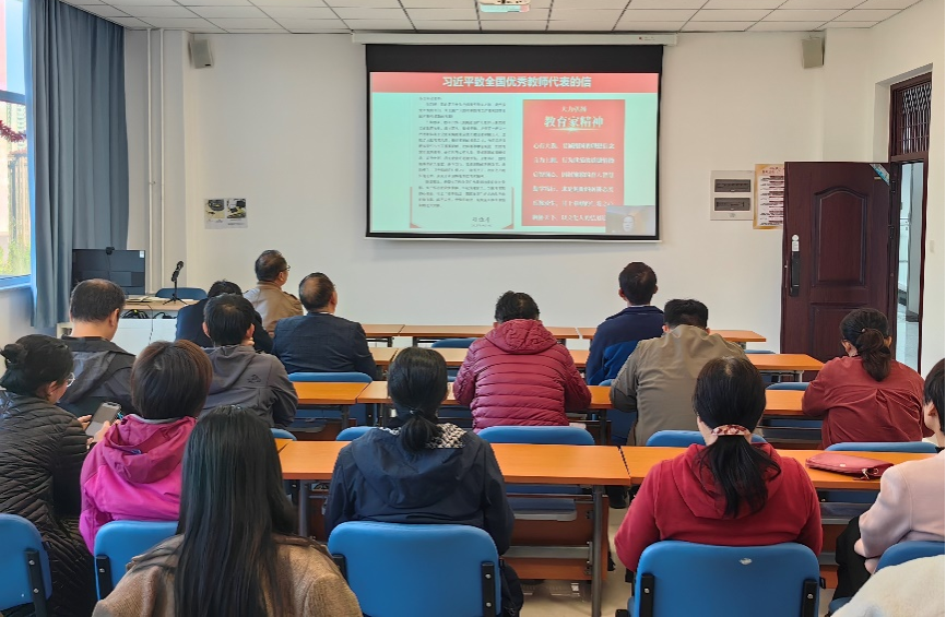 最后,会议进入了师德师风专题培训环节。全体教师共同观看了《以教育家精神,引领教师发展与成长》在线学习视频。视频通过生动的案例和深刻的剖析,引领教师们形成正确的价值观念,有效提升了教师的师德师风与专业素养。