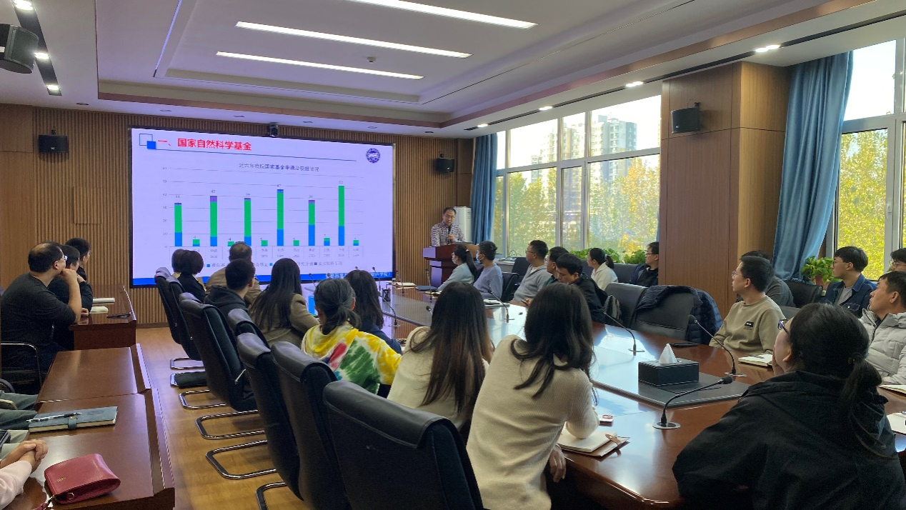 会上,王林总结分析了我院近六年基金申报及立项情况,并结合我院实际情况,从2025年度任务目标指标、申报组织工作安排等方面作了部署,向参会教师介绍我院今年针对基金申报实行的主要新举措。