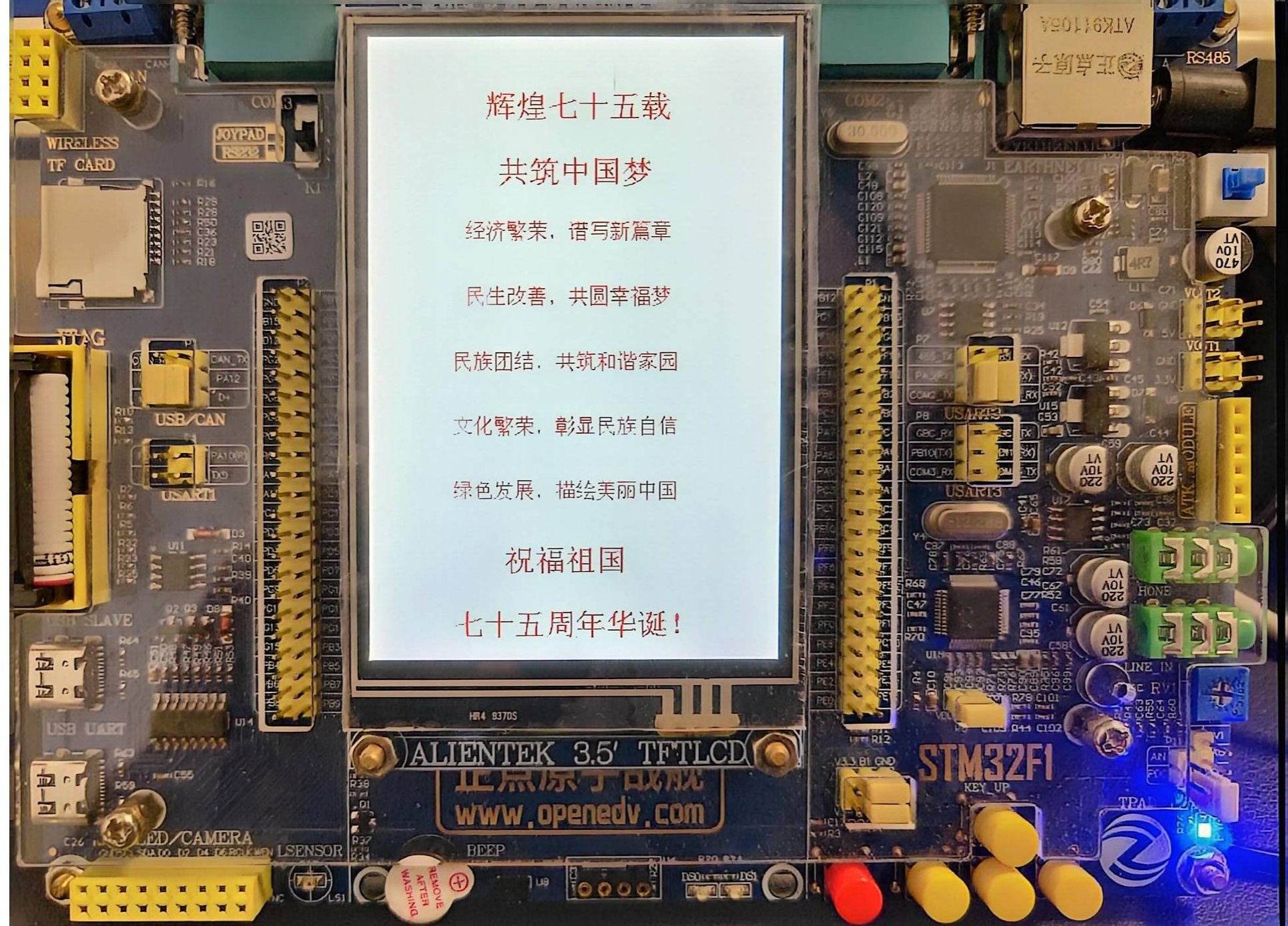 编代码编织爱国情,强科技振兴中国梦。学院党委开展了“祖国在我心 代码永传情”微程序创意设计大赛活动,围绕庆祝中华人民共和国成立75周年主题,学员们发挥所学的单片机、嵌入式系统等知识,进行嵌入式编程;或者通过编写C++/C、Java、Python等编程语言程序,创作出展现人民群众在民计民生、社会进步、科技发展等方面的作品,用专业知识和动手技能展示了当代青年科创报国,建设强国的昂扬向上的精神面貌。学员们结合所学所获,所感所悟踊跃参加实践教育活动,共收集100余件高质量作品,为祖国华诞献上真诚的祝福。