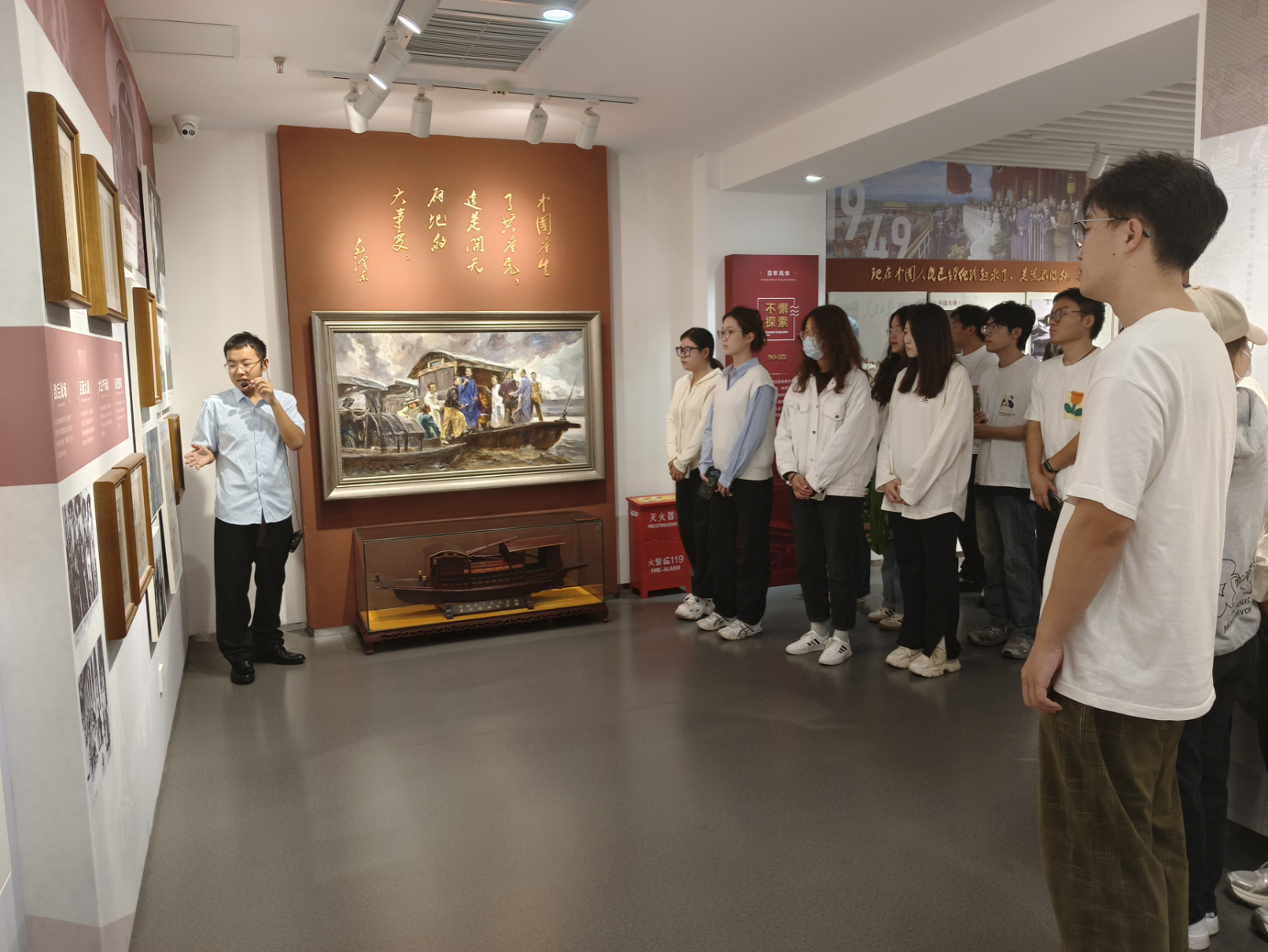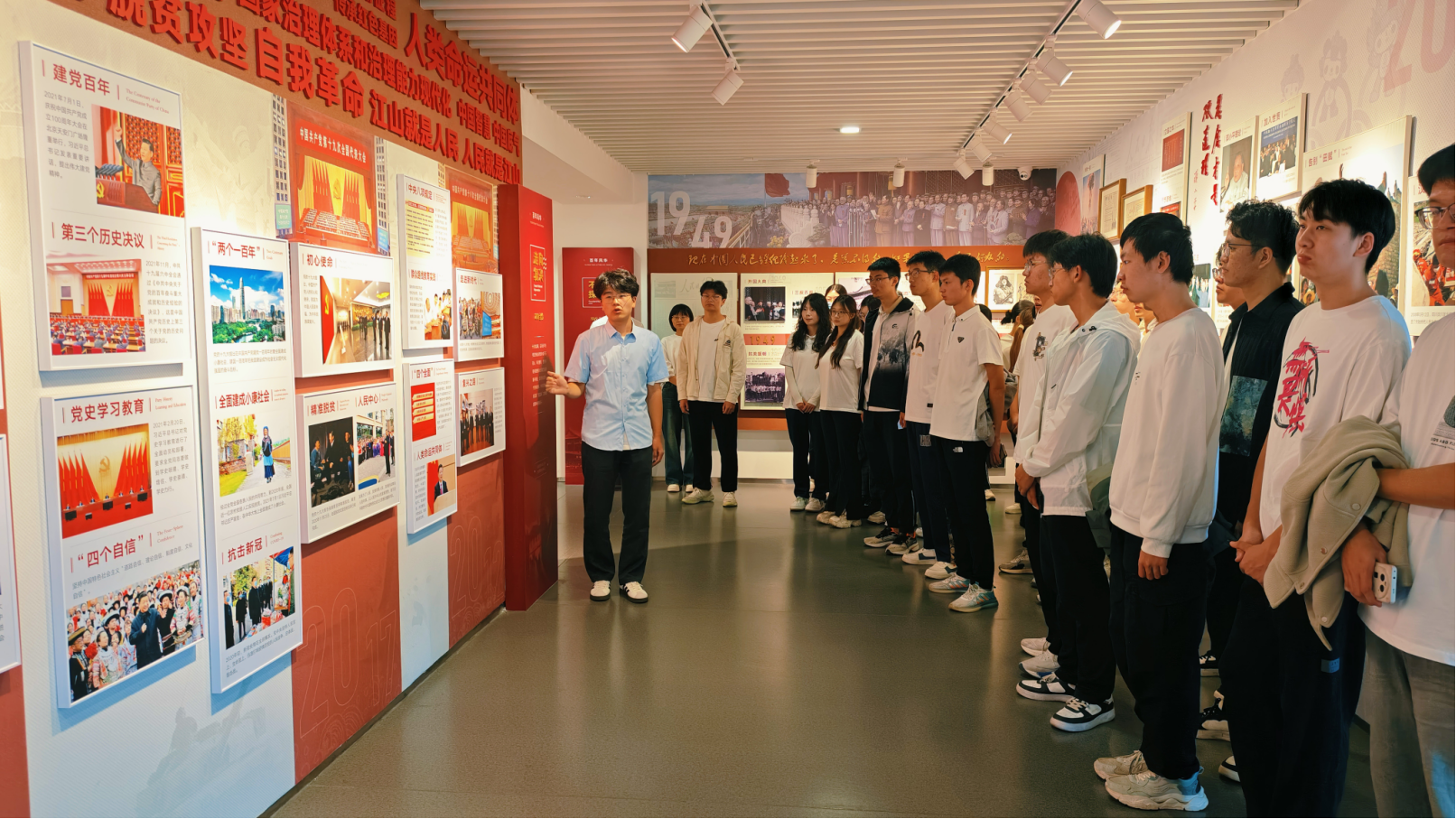 听一场党史讲解,感受一次精神洗礼。学员们来到学校党员组织生活馆,在讲解员的带领下,透过一幅幅历史图片、一个个鲜活事例,共同回顾了中国共产党带领全国各族人民进行革命、建设和改革的伟大历程,感悟社会主义从空想到科学,马克思主义从产生到发展所表现出的强大生命力,认真学习了中国共产党在长期奋斗中构建起的中国共产党人的精神谱系,致敬不同历史时期为新中国成立不畏牺牲,顽强拼搏的先烈英模。