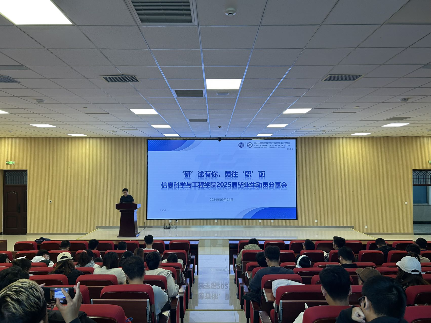 为切实做好2025届本科毕业生就业工作,推动毕业生实现高质量就业,信息科学与工程学院(软件学院)于9月21日至9月24日在信息馆行知报告厅召开2025届全体本科毕业生就业动员会。会议由2025届本科毕业班辅导员李围、刘许瑞、马琳琳主讲。