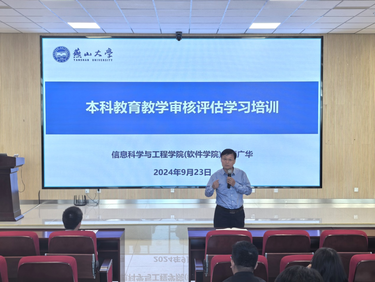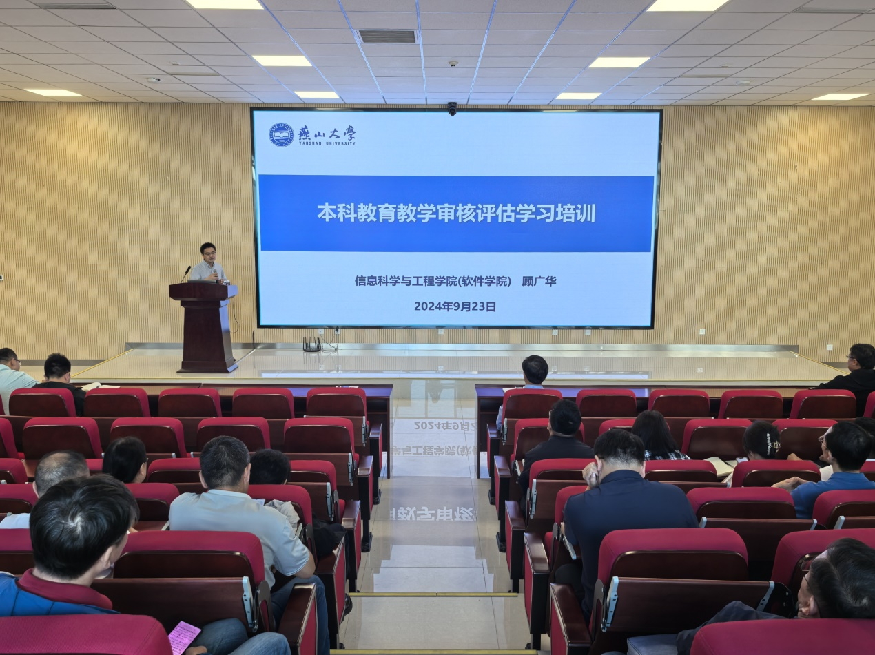 为贯彻落实学校本科教育教学审核评估整改工作部署,促进我院教师对学校本科教育教学审核评估工作的了解,切实迎接学校审核评估工作顺利进行,9月23日下午,学院在信息馆2号楼行知报告厅举办本科教育教学审核评估专项学习培训会。培训会由学院副院长顾广华主讲,学院全体教职工参加了培训会议。