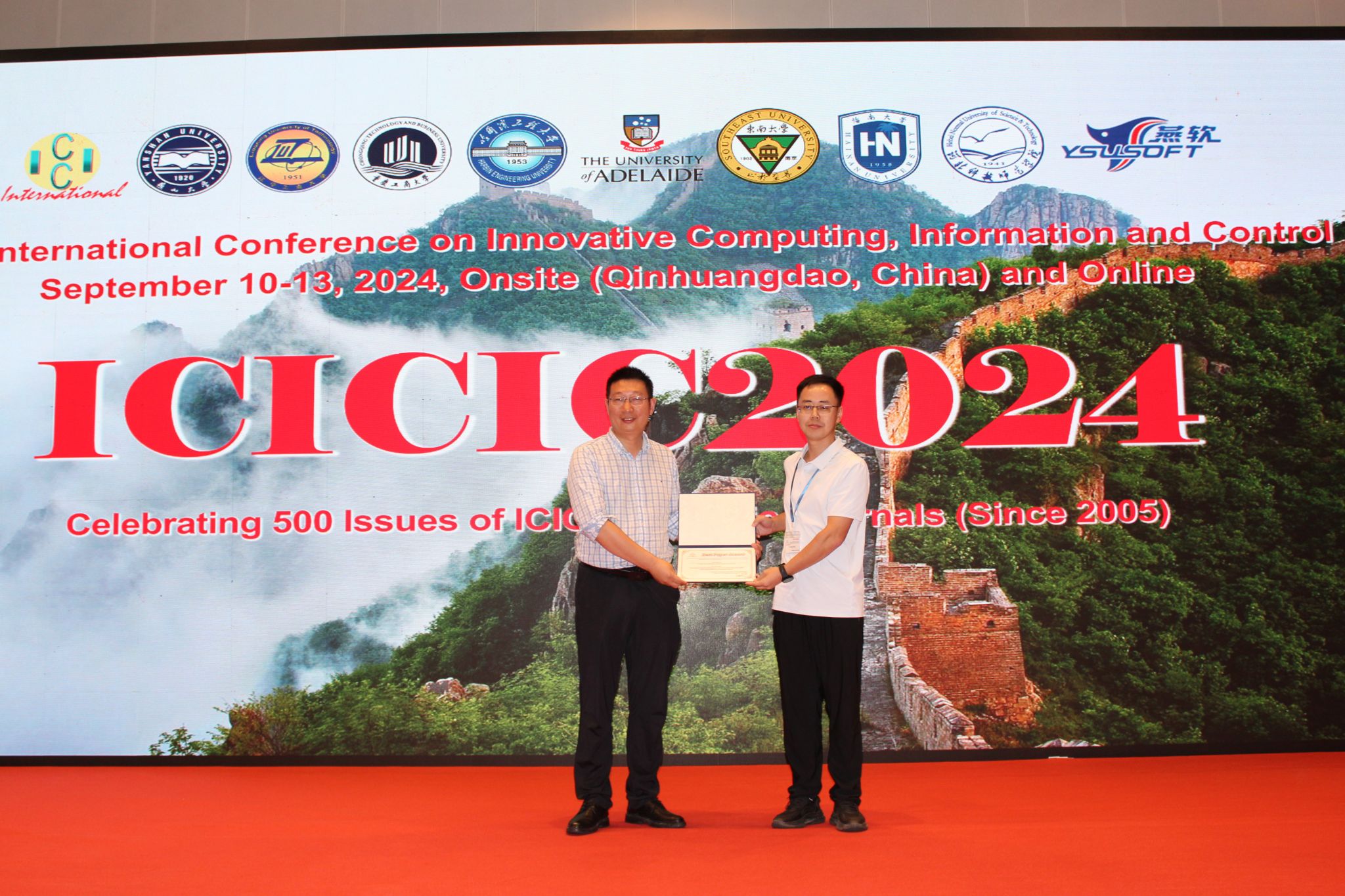 9月10日至13日,由ICIC国际学会主办,燕山大学信息科学与工程学院、河北燕大燕软信息系统有限公司共同承办的第十八届创新计算、信息与控制国际会议(The 18thInternational Conference on Innovative Computing, Information and Control, ICICIC2024)在秦皇岛举行。会议以线上线下相结合的形式进行,来自10多个国家和地区的400余名专家学者和师生参会,其中线下参会的国内学者200余人、国外学者100余人。