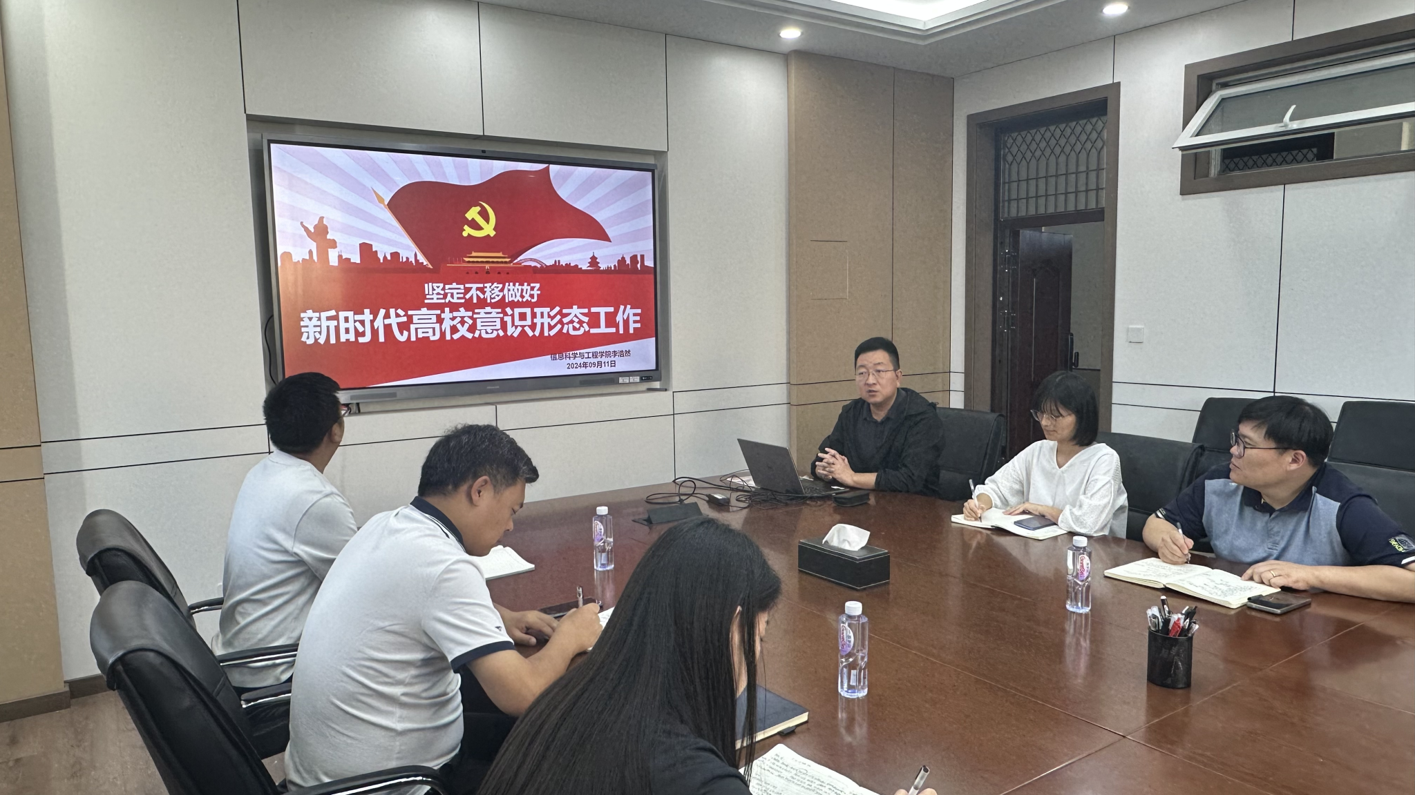 为进一步强化学团工作队伍政治意识,提升在意识形态领域的工作能力和水平,9月14日,信息科学与工程学院(软件学院)学工办举办了辅导员“6G基站”能力素质提升工程第12期暨新入职辅导员业务培训第1期,学院党委副书记李浩然专题主讲《坚定不移做好新时代高校意识形态工作》,全体辅导员参加培训。