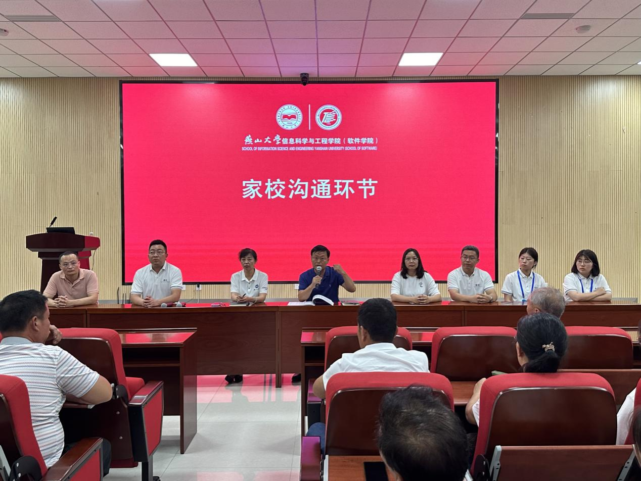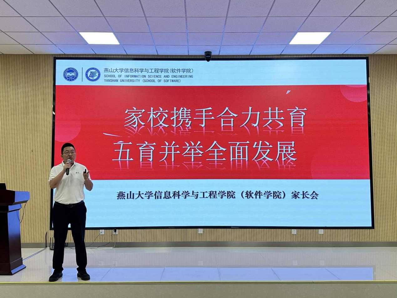 院长齐跃峰围绕信息学院历史沿革、专业设置、师资力量、组织架构和学科概况等方面对学院进行了系统介绍。齐跃峰院长强调了家校协同育人的重要性,希望家长们能密切关注学生和学院情况,通力协作合作、共育学生健康成长成才,希望家长帮助新生尽快转变角色,明确发展目标,成长为胸怀理想,肩扛责任,能做贡献的社会栋梁。