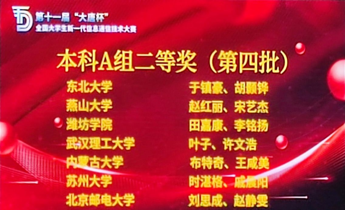 2024年第十一届“大唐杯”全国大学生新一代信息通信技术大赛结果揭晓,燕山大学在本届大赛中喜获佳绩,共获得国家级二等奖3项、三等奖2项,省一等奖6项、省二等奖3项、省三等奖8项。其中,信息科学与工程学院顾广华老师指导的孙文星等5位同学、侯春良老师指导的赵红丽等2位同学、尹荣荣老师指导的何鸣奇等6位同学荣获全国二等奖,侯春良老师指导的葛京豫、王鹏程同学及李玉博、李林老师指导的潘绍赫、张子昂同学荣获全国三等奖。