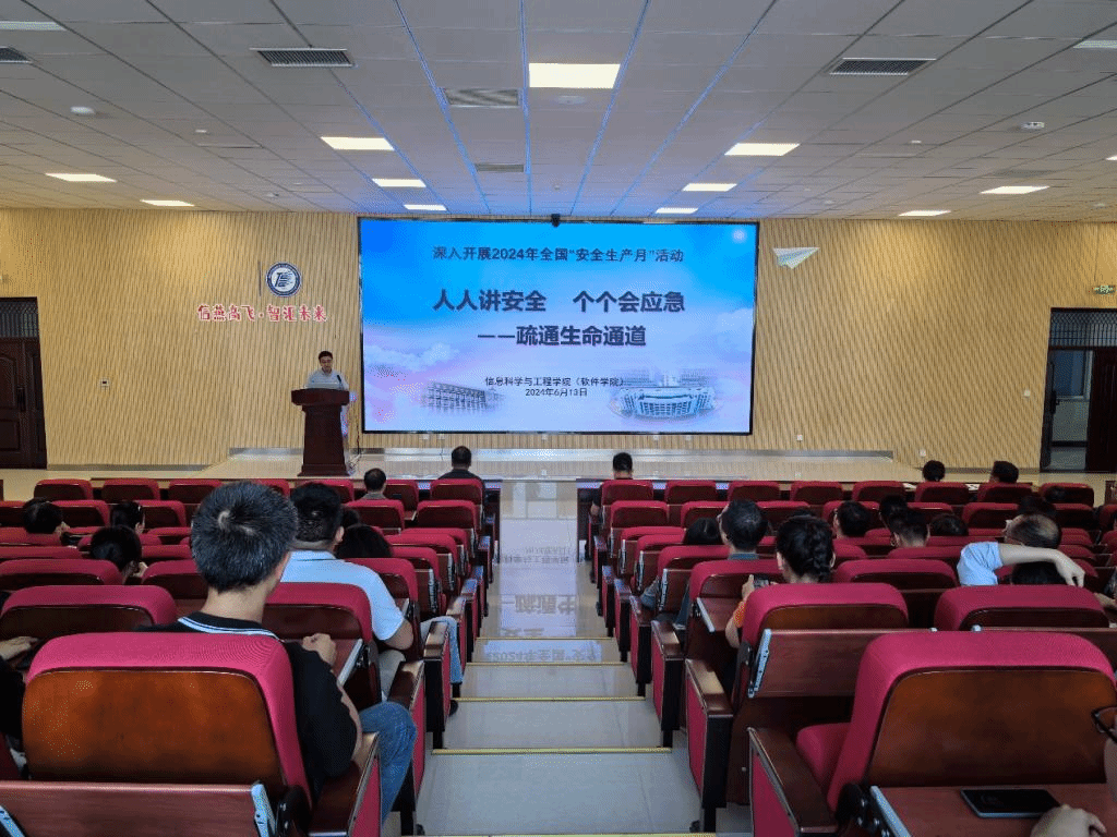 为进一步领会习近平总书记关于安全生产重要论述的精髓要义,持续深入学习习近平总书记关于安全生产重要论述和重要指示批示精神,落实《关于开展2024年安全生产月宣传教育活动的通知》和《关于开展打通消防“生命通道”行动的通知》要求,6月13日下午,信息科学与工程学院(软件学院)在信息馆2号楼行知报告厅组织全院教职工集中开展安全生产月教育学习活动。