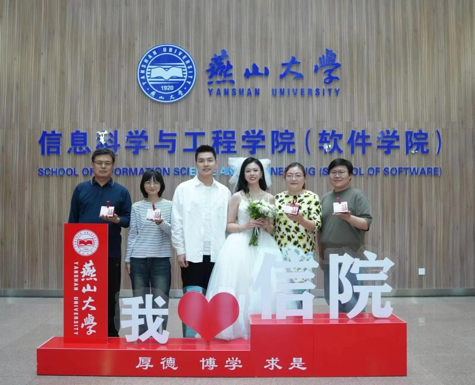 “燕大,我们回来了!”5月24日,一对身着礼服的新人出现在燕山大学信息科学与工程学院(软件学院)。这是学院2017级电子信息工程专业校友于璐璐和李光辉回母校拍婚纱照。