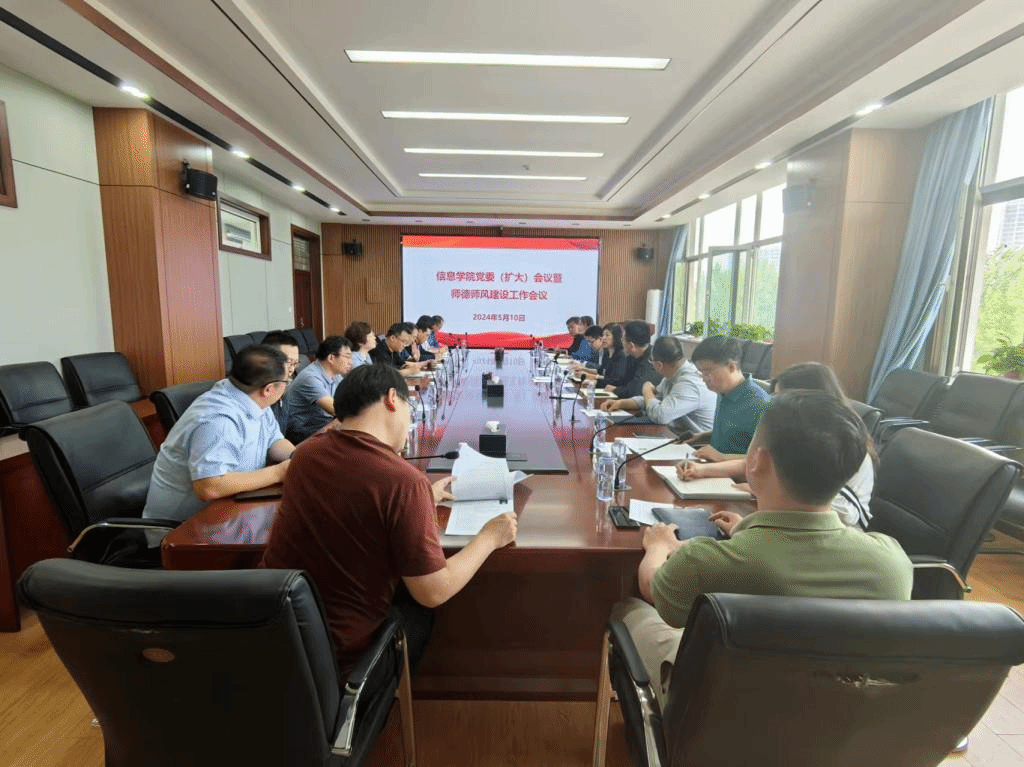 为认真贯彻落实学校师德师风建设工作推进会会议精神,进一步统一思想、明确任务、压实责任,5月10日下午,信息科学与工程学院(软件学院)召开党委(扩大)会议暨师德师风建设工作会议。学院党委书记胡铁巍主持会议。学院党委委员、师德师风建设工作领导小组成员参加会议。