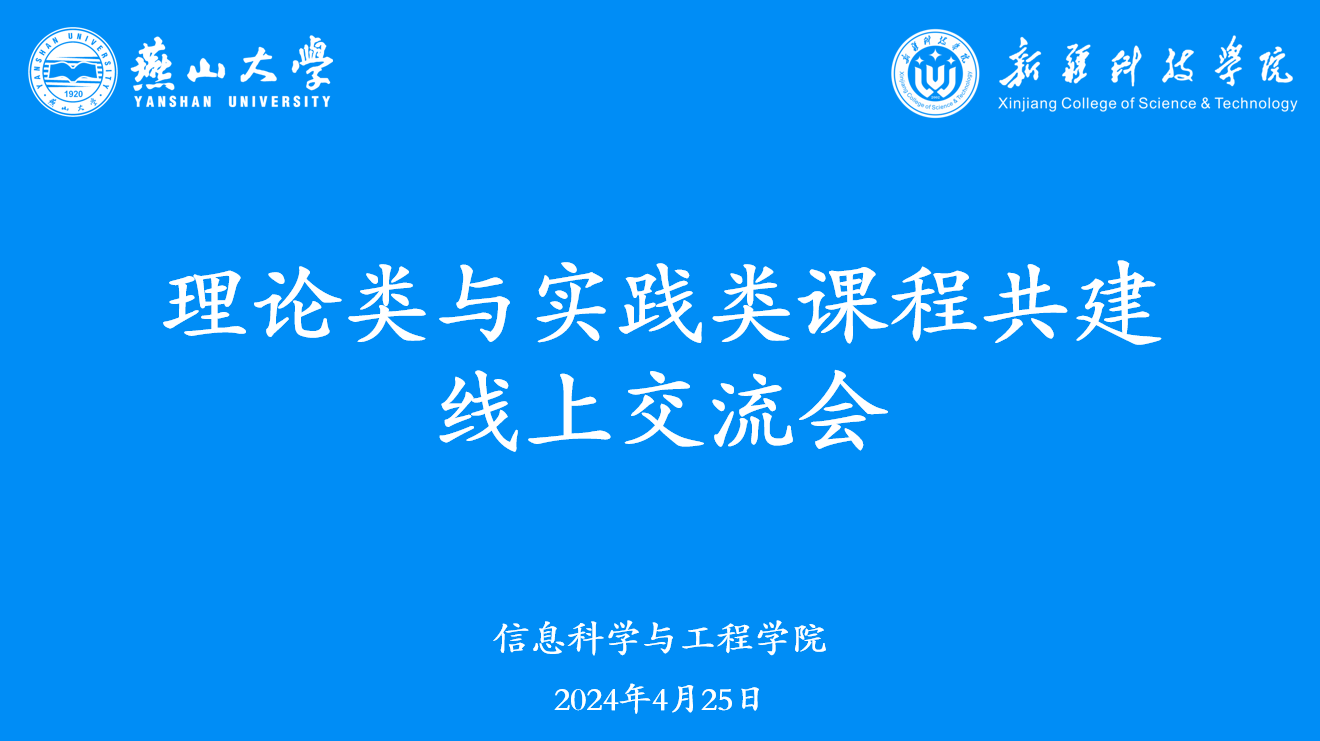 为全面贯彻习近平新时代中国特色社会主义思想和党的二十大精神,深入贯彻习近平总书记关于教育的重要论述,进一步深化对口支援高校的全面合作,按照3月28日燕山大学信息科学与工程学院(软件学院)与新疆科技学院信息科学与工程学院党总支共建行动清单工作要求。4月25日,双方在共建课程和共建内容前期充分沟通的基础上,开展计算机理论类与实践类课程联合备课研讨会。
