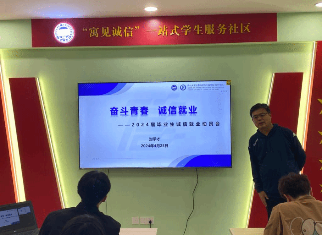 同日下午,刘学才和对接联系的21级硕研电子科学与技术1班开展“奋斗青春 诚信就业”的动员会。他详细了解参会学生目前就业落实情况,尤其详细了解未落实就业去向同学的具体情况。他从诚信的概念入手,阐述诚信的重要性,号召同学们要诚信做人,诚信做科研,诚信就业。他讲到,违约对学校、用人单位、其他同学、甚至个人信用都会产生不良影响,建议同学们在就业过程中,签约前要深思熟虑,违约更要甚至考虑。随后他对同学们咨询的具体违约流程进行了详细的解答。