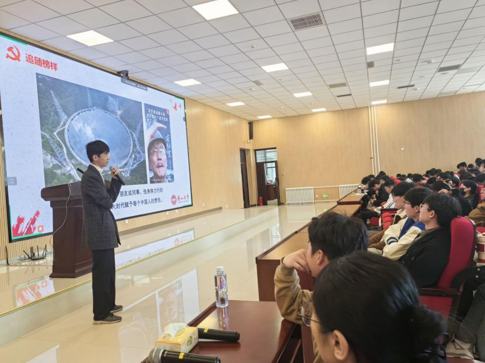 学理论,强党性;学榜样,争先锋。为发挥优秀学生党员朋辈引领作用,引导学生向优秀党员看齐,在实干中增长本领,在拼搏中明初心,筑信仰,不断向党组织靠拢,在“勤学”模块中,分党校还举办了“榜样引领-与优秀学生党员面对面”分享交流会。本科生第二党支部党员薛良同志作主讲嘉宾。薛良同志从理论学习、竞赛经历、科研之路、志愿服务等方面讲述了自己的成长经历,他在成长中不断端正入党动机,坚定信仰,从一名优秀学生逐渐成长为一名优秀学生党员。薛良同志脚踏实地,心怀理想,秉持初心,奋发向上,把优秀成为习惯,为周围的人给予力量,甘于奉献,充分彰显了新时代学生共产党人把理想信念化为行动力量的政治品格和先锋形象,为广大学员树立了前进的标杆。