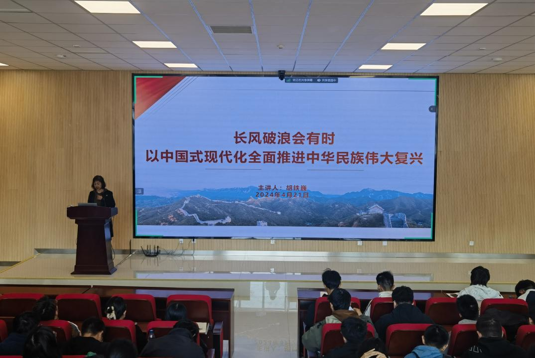 胡铁巍书记作《长风破浪会有时---以中国式现代化全面推进中华民族伟大复兴》专题辅导报告。胡书记从“为什么说实现中华民族伟大复兴进入了不可逆转的历史进程”、“如何擘画全面建成社会主义现代化强国的宏伟蓝图”、“中国式现代化是一种什么样的现代化”三个方面详细阐述了主题。胡书记指出,实现中华民族伟大复兴这一最伟大的梦想是党百年奋斗的主题,展现出了前所未有的光明前景,但仍具备艰巨性、复杂性和长期性,而全面建成小康社会、全面建成社会主义现代化强国、坚定中国式现代化是全面建成社会主义现代化强国的必经之路。报告中,胡书记详细阐释了中国式现代化的中国特色、本质要求与文明贡献,总结出推进中国式现代化需要把握的重大原则和重大关系。通过学习,学员们对中华民族伟大复兴、社会主义现代化强国与中国式现代化等概念有了更加清晰的认识,更加坚定了以中国式现代化全面推进中华民族伟大复兴的信念与信心。