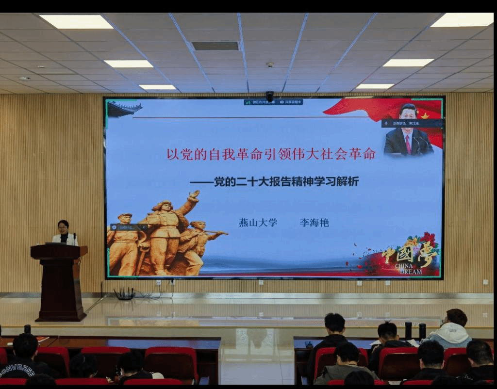 李海艳老师作题为《以党的自我革命引领社会革命——党的二十大精神学习解析》专题辅导报告。李老师将理论讲解扎根于党的二十大报告,深刻阐述“以党的自我革命引领社会革命”这一伟大论述,铿锵有力地讲解了什么是“自我革命”,为何“自我革命”和如何“自我革命”三方面问题,报告充满感染力,让学员对党的自我革命有了更深入的理解,认识到自我革命是党的生命线和发展的动力所在,也提升了自我的思想境界和政治素养,对党的二十大报告有了更全面的认识,同时还对中国共产党先进性的认知有了大大提高,决定从自身做起,加强自律和反思,努力做新时代合格党员。