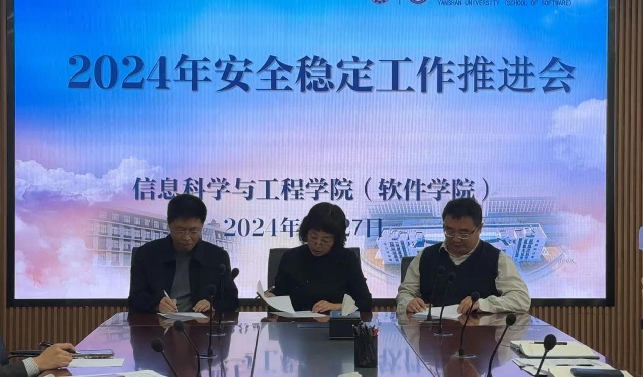 最后,胡铁巍指出,安全无小事,责任大于天。各单位要不断提高思想认识,扛稳政治责任,切实加强安全教育和宣传力度,加强重大安全风险专题研判,做好应急准备工作。要严格按照“党政同责、一岗双责、失职追责”要求,把维护校园安全稳定各项措施落到实处,确保学院大局稳定,为实现学院全年工作目标提供坚强有力的安全保障。会议最后,学院与各单位签署了《信息科学与工程学院(软件学院)2024年安全稳定工作责任书》。