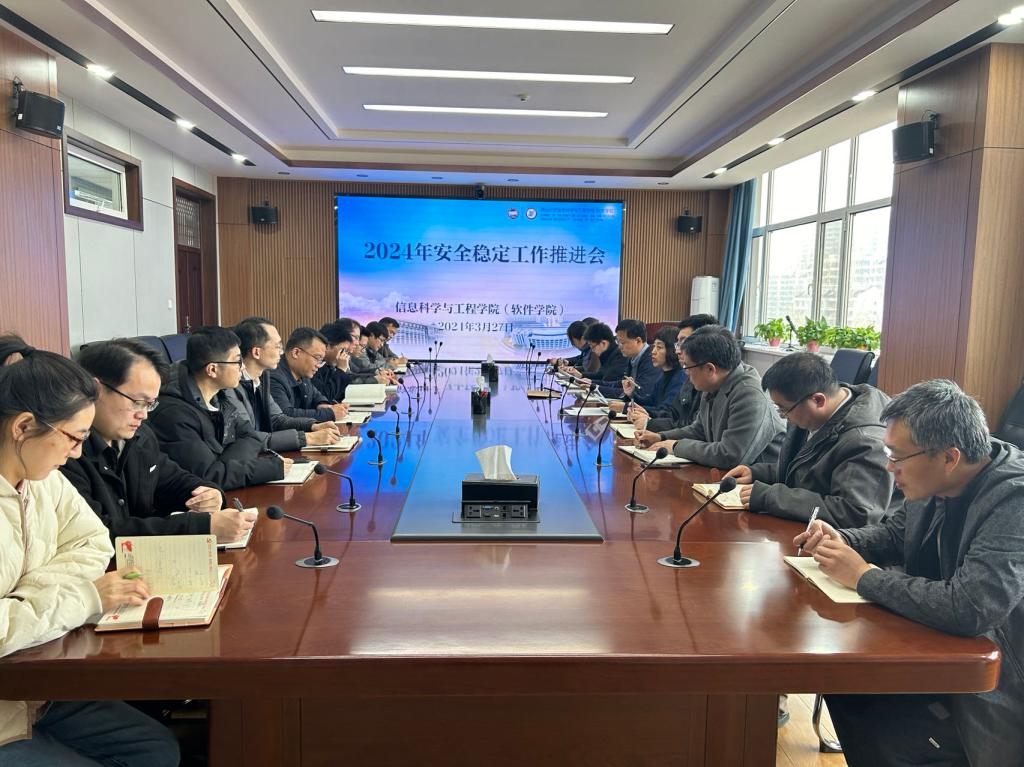 为切实抓好学院安全管理工作,落实《关于进一步加强校园安全工作的通知》要求,3月27日下午,信息科学与工程学院(软件学院)在信息馆1号楼336室召开2024年安全稳定工作推进会。学院领导班子成员、各系主任、支部书记、副主任、科级干部参加会议,会议由学院党委书记胡铁巍主持。