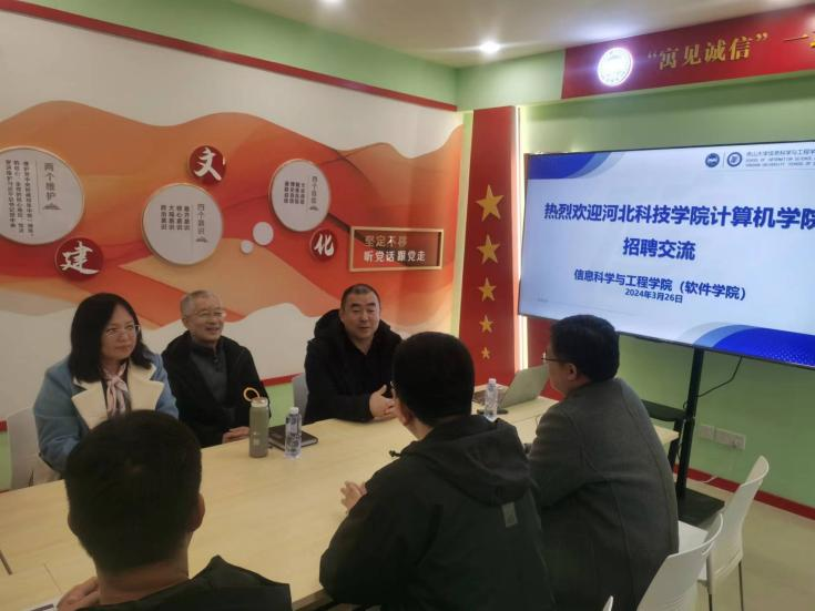 此次招聘单位是河北科技学院计算机学院,为引进人才,增强师资,向信息科学与工程学院毕业生抛出橄榄枝,希望招聘更多的优秀学生入职。信息科学与工程学院(软件学院)党委副书记李浩然、副处级辅导员刘学才、辅导员贾永伟和部分有就业意向的硕士应届毕业生代表参加了招聘座谈会。