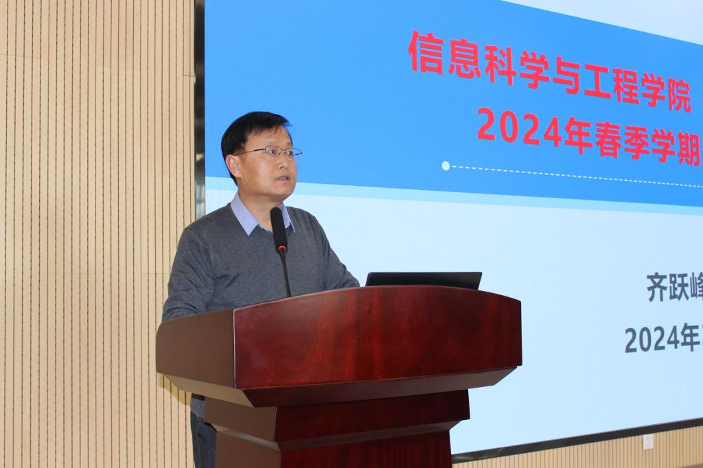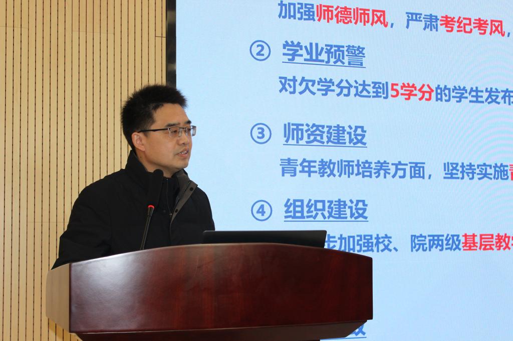 会上,院长齐跃峰传达了学校2024年会议精神,并结合学院2023年关键性考核指标完成情况,从人才培养、科学研究、人才引进、社会服务、学生工作、制度建设六方面对2024年学院重点工作进行了安排部署。他强调,学院各项工作成绩的取得离不开全院教职工的辛勤努力,希望大家能够同心协力,继往开来,力争在学院2024年的重点工作中取得新突破。