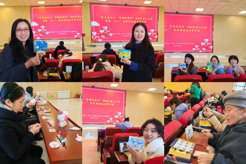为庆祝第114个国际劳动妇女节,给全校女教工们送去节日的祝福。3月8日上午,信息科学与工程学院(软件学院)在信息馆2号楼行知厅举办了“丹青绘初心 巾帼绽芳华”DIY手绘活动,此次活动是学校“巾帼绽芳华建功新时代”庆祝“三八”国际劳动妇女节系列活动之一。活动由学院分工会主席苏静主持。