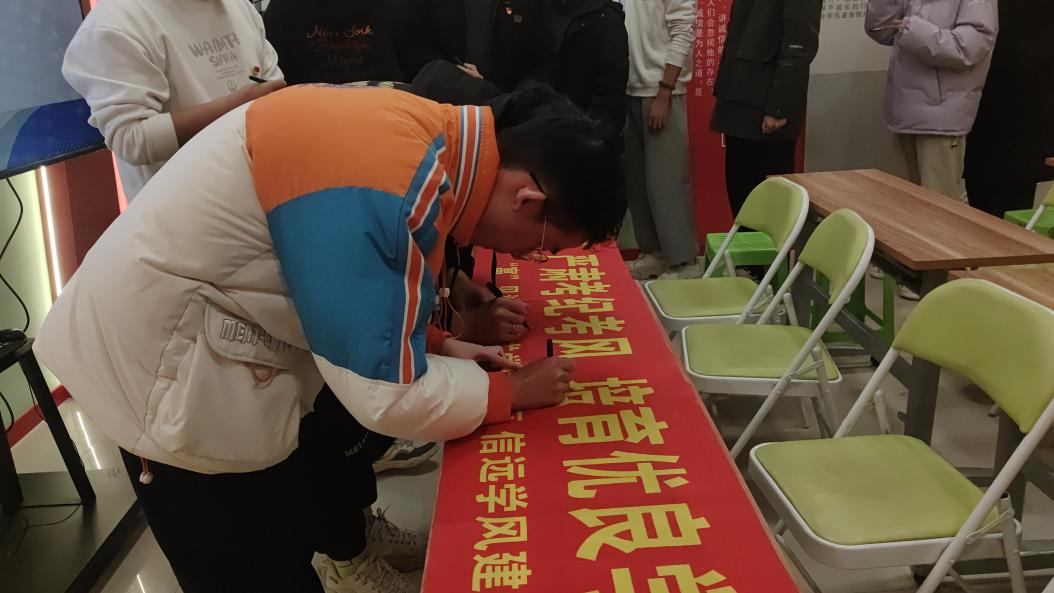 最后,在考试周即将来临之际,学院依托一站式社区建设,在学生公寓开展了诚信考试周签名活动,号召同学们认真复习,全力备考,用最好的成绩,以实际行动为建设诚信校园、文明校园贡献力量。