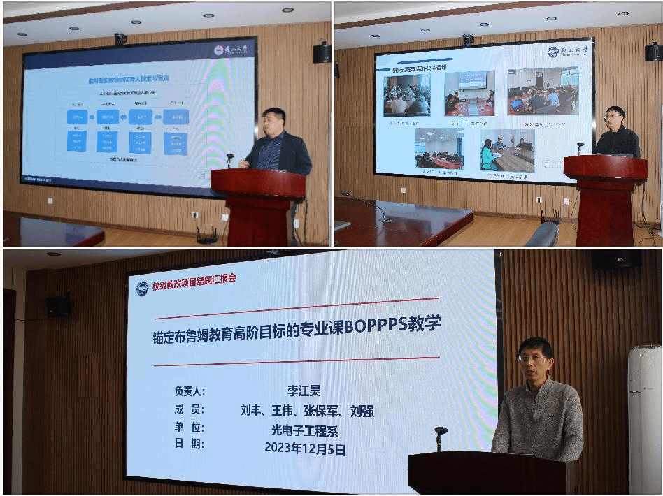 答辩会中,顾广华首先就此次教改项目的评审流程及评审标准进行了全面介绍。随后,结题教改项目负责人依次通过PPT展示的形式,从研究背景、研究方向、研究结果及获得成果等方面进行汇报。评审专家认真听取汇报,并分别从项目的科学性、合理性,研究方法的创新性,研究成果的产出与实践运用等方面做出评价,对项目取得的成果表示肯定。最后,经过评审组专家集体审议,本次参加评审的11项教改项目全部结题通过,其中刘宇涵、刘帅、李江昊3位老师的项目被评为优秀结题项目。