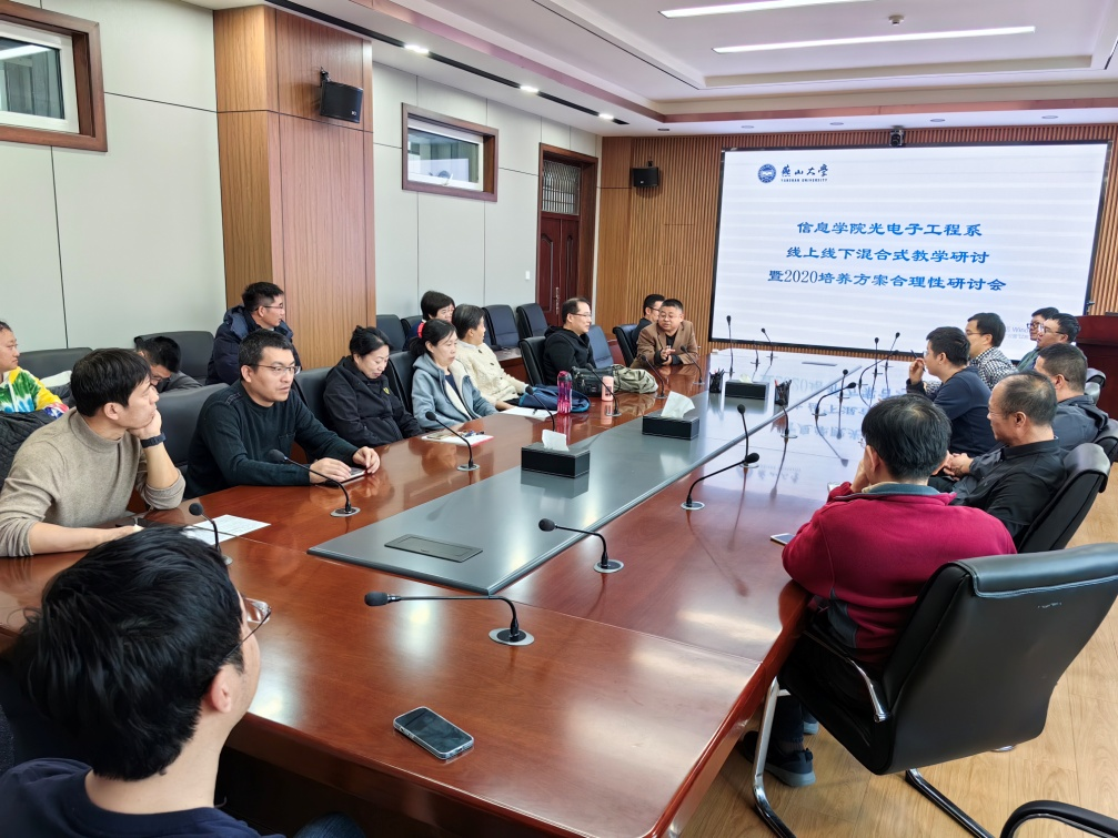 为了推进线上线下混合式教学工作的开展,11月20日下午,光电子工程系在信息馆1号楼336会议室召开了线上线下混合式教学专题研讨暨2020版培养方案合理性研讨会。
