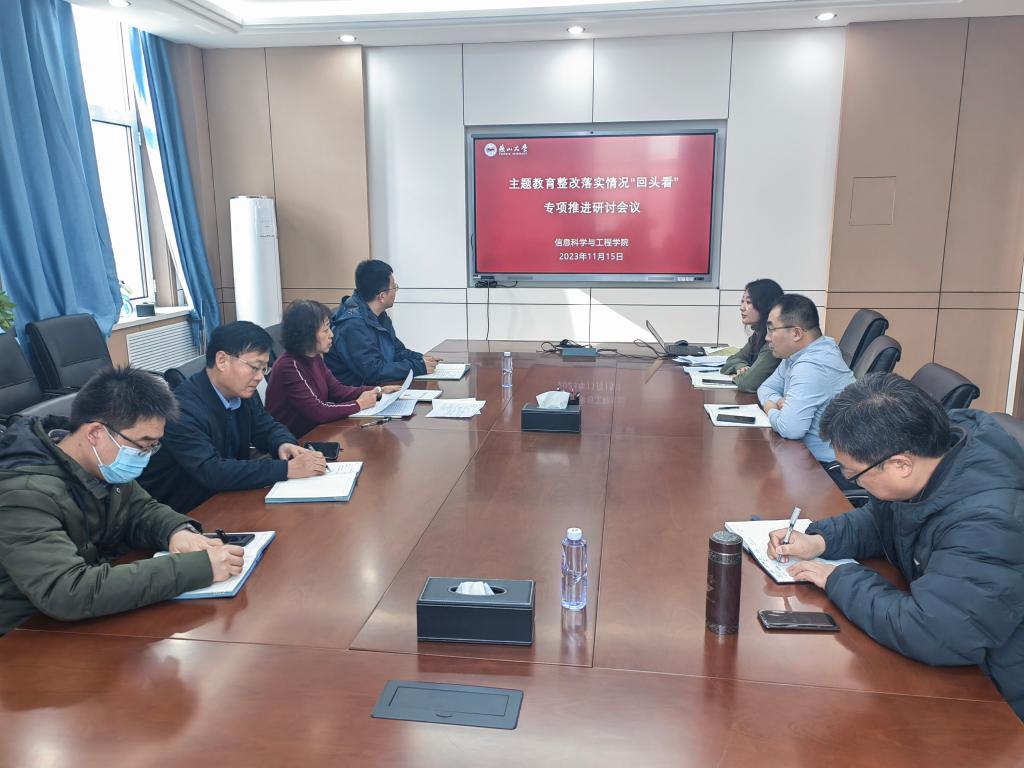 11月15日上午,信息科学与工程学院(软件学院)在信息馆一号楼301室召开主题教育整改落实情况“回头看”专项推进研讨会。学院党政领导班子成员、处级干部参加会议,会议由学院党委书记胡铁巍主持。