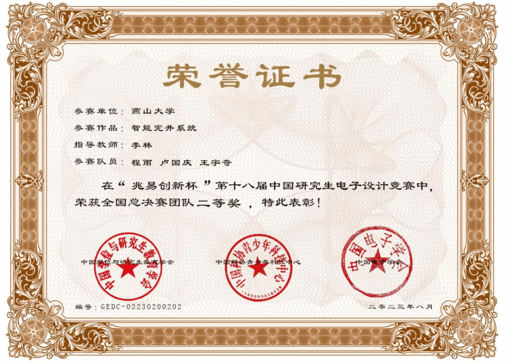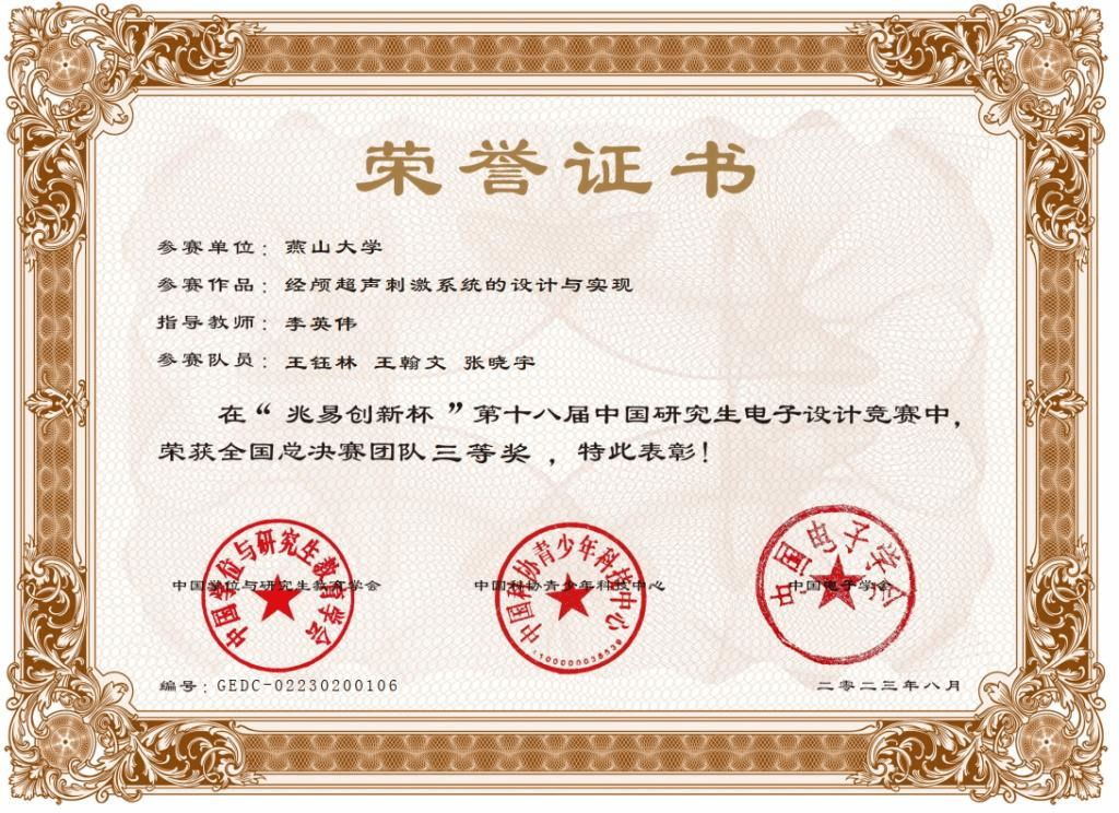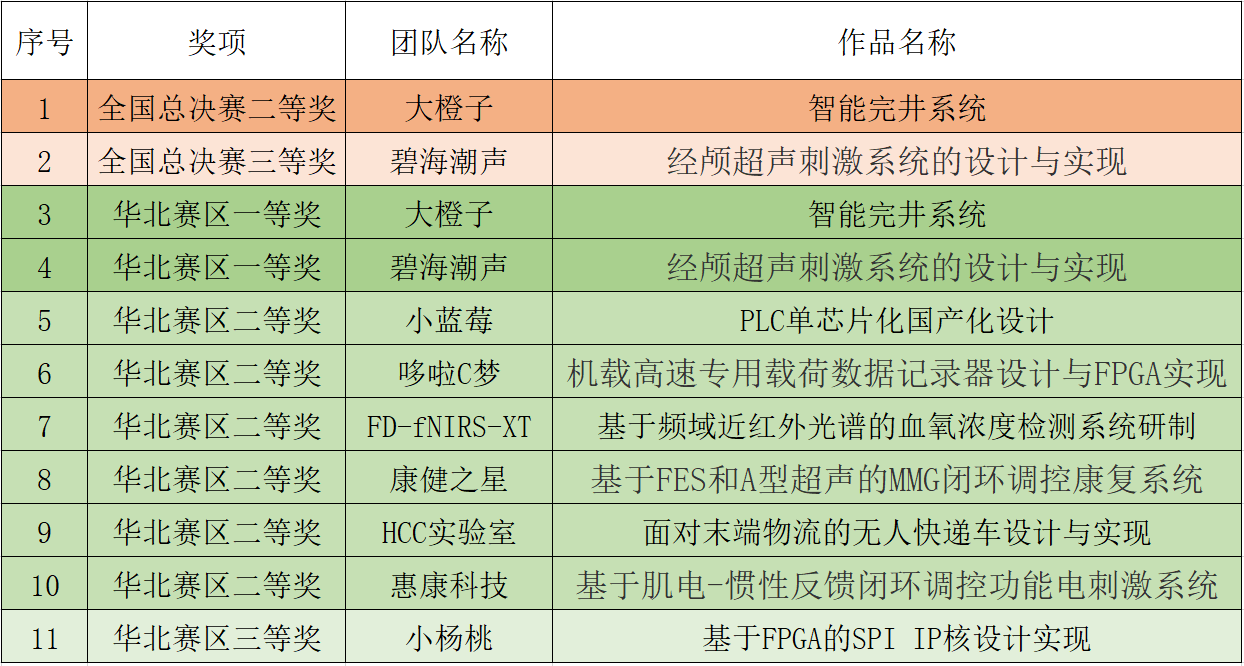 8月17日,“兆易创新杯”第十八届中国研究生电子设计竞赛国赛结果揭晓。我校在本届大赛国赛中再次喜获佳绩,共获得国家级二等奖1项、国家三等奖1项、华北赛区二等奖6项,华北赛区三等奖1项。其中来自信息科学与工程学院的参赛作品《智能完井系统》获得国家级二等奖、《经颅超声刺激系统的设计与实现》获得国家三等奖。