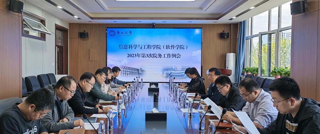 10月9日下午3:30,学院在信息馆336室召开2023年第3次院务工作例会,学院领导班子、处级干部、系主任、正科级秘书、团委书记参加会议,会议由院长齐跃峰主持并讲话。
