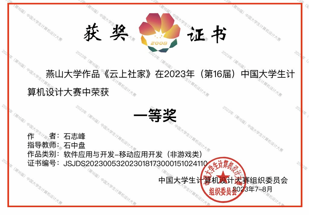 近日,历时半年的2023年(第16届)中国大学生计算机设计大赛国赛结果揭晓。近年来,大赛国赛获奖比例逐年缩减,我校在本届大赛国赛中再次喜获佳绩,共获得国家级一等奖1项、二等奖10项、三等奖6项。 其中来自信息科学与工程学院的参赛作品《云上社家》获得国家级一等奖。
