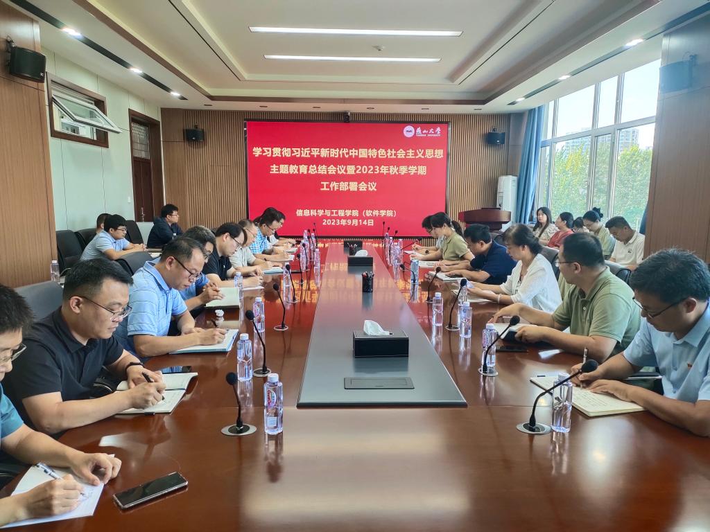 9月14日下午15:30,信息科学与工程学院(软件学院)在信息馆1号楼336室召开学习贯彻习近平新时代中国特色社会主义思想主题教育总结会议暨2023年秋季学期工作部署会议。学院领导、科级干部、系主任、党支部书记、系副主任参加会议,会议由正处级辅导员苏静主持。
