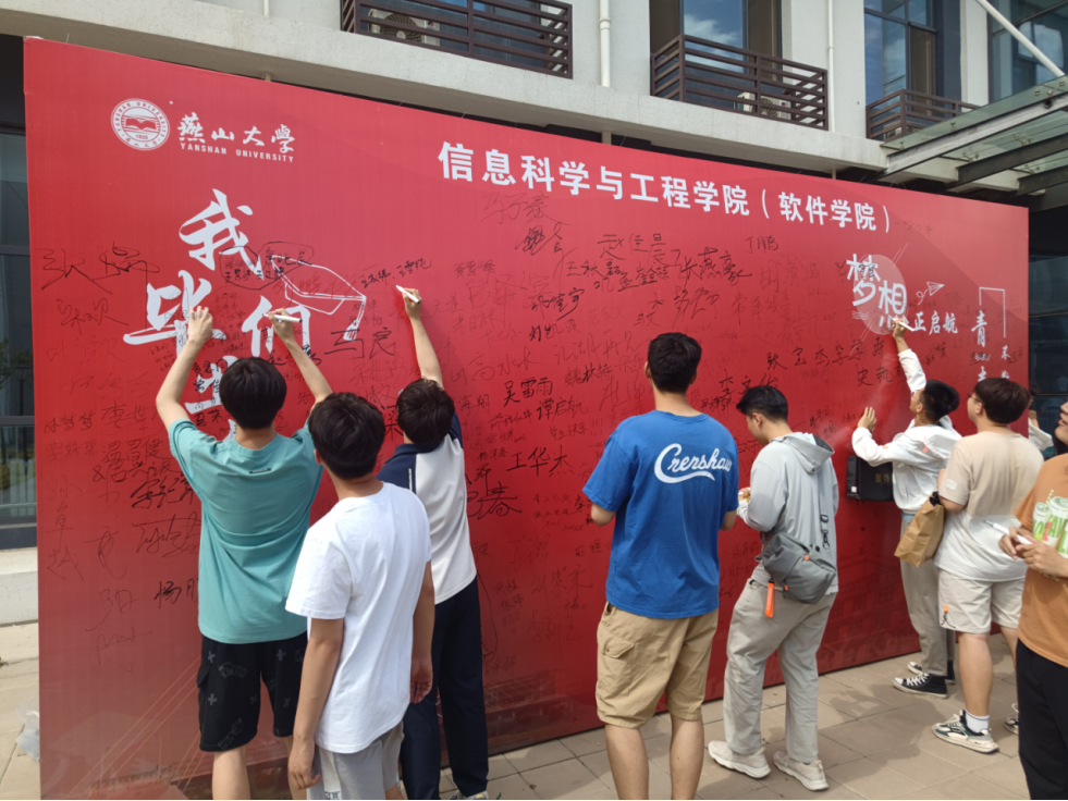 为纪念美好大学时光,送别毕业学子奔赴各地。2023年6月8日下午,信息科学与工程学院(软件学院)举行“青春不散场,梦想正启航”毕业生签名祝福活动。
