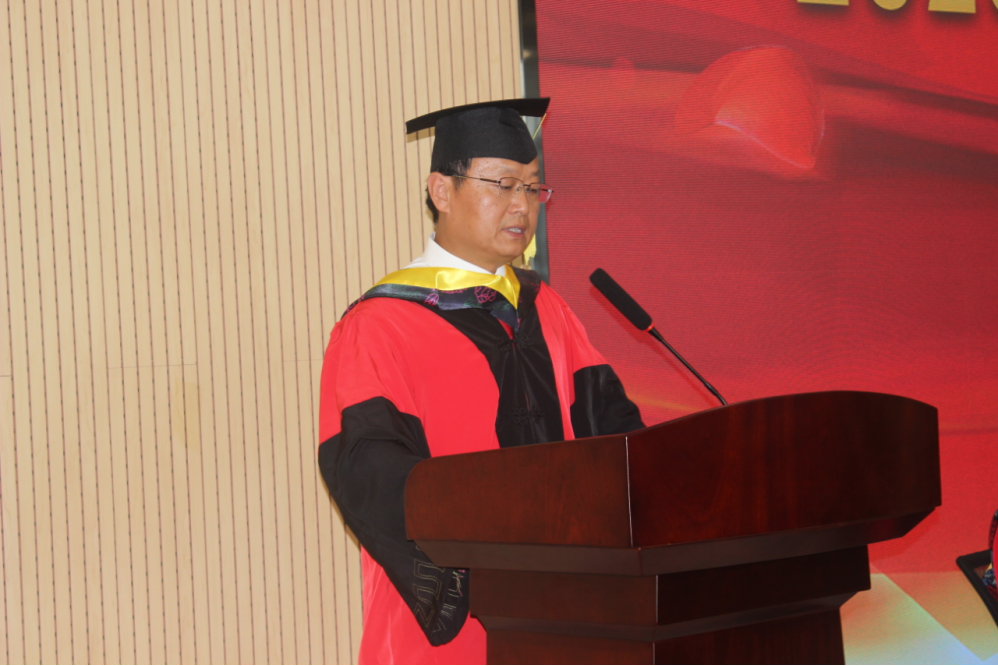 院长齐跃峰、副院长练秋生、副院长王常武、各系系主任共同为毕业生授予学位。