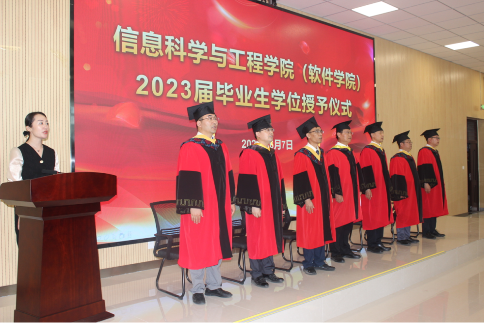 6月7日下午,信息科学与工程学院(软件学院)2023届本科毕业生学位授予仪式在信息学院行知报告厅举行。院长齐跃峰、副院长练秋生、副院长王常武和各系主任、教师代表出席。仪式由学院党委副书记苏静主持。