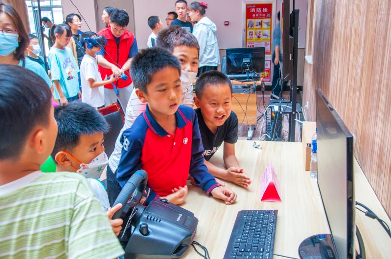 小朋友们现场体验科普展品