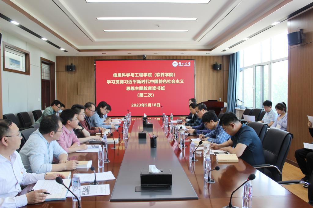 5月18日下午,信息科学与工程学院(软件学院)党委在信息馆一号楼336室开展学习贯彻习近平新时代中国特色社会主义思想主题教育读书班第二次集中研学。本次集中研学由学院党委书记王昕主持,学院班子成员、科级秘书、党支部书记、系主任、辅导员参加。