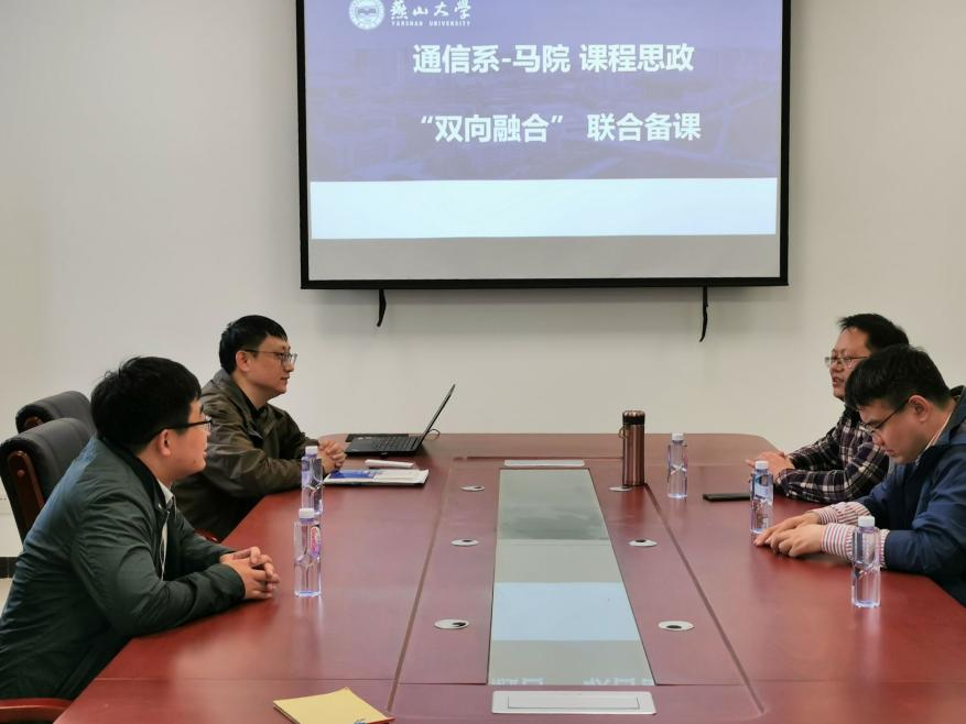 4月28日下午,电子与通信工程系邀请马克思主义学院陈步伟老师和崔冠华老师参加《数据结构B》和《C++面向对象程序设计》课程思政示范课程的联合备课活动。本次活动在信息馆一号楼239室举行,通信系多位老师参加。